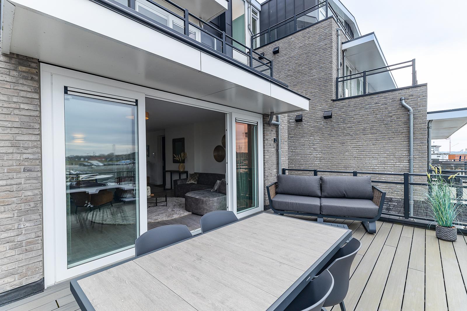 - Ruim terras aan de jachthaven